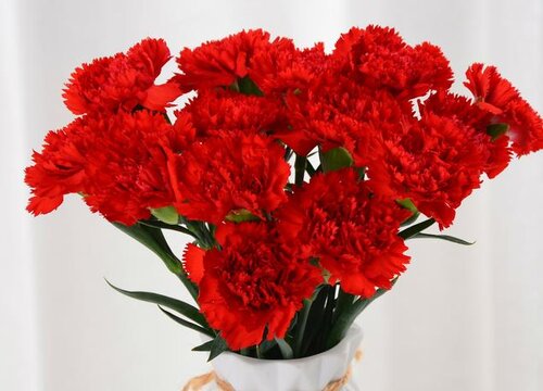 3、紅色康乃馨還有著崇拜敬仰的含義,它代表著尊敬與敬仰,可以將紅色康乃馨送給長(zhǎng)輩或者老師,表達(dá)對(duì)他們的敬仰之情,而且紅色康乃馨具有較高的觀賞價(jià)值,可以將其放置在客廳中美化環(huán)境。