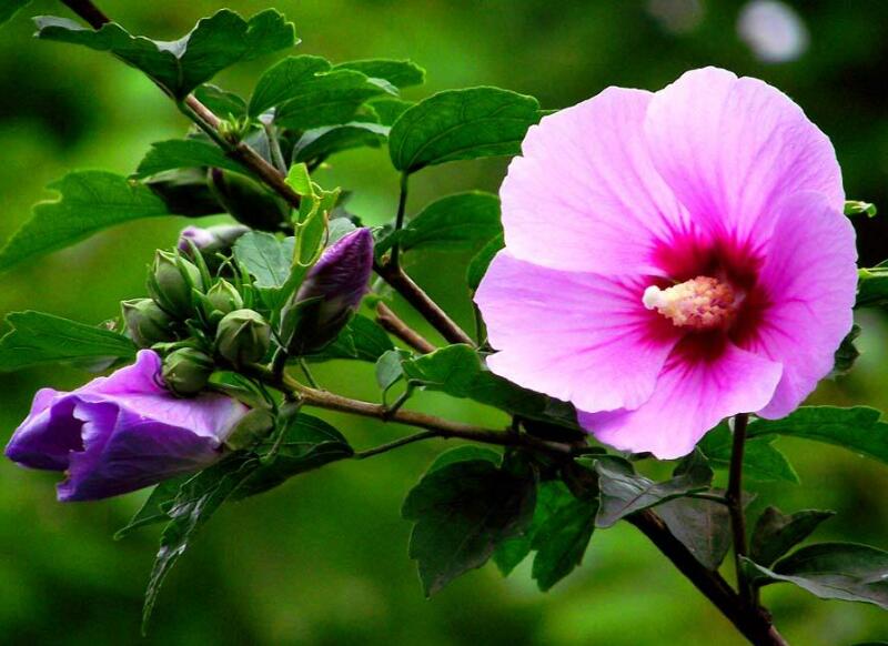 木槿花的分支比較多,而且分枝能力是很強的,這種植物每個上面都有很多的小枝,它的生長比較快速,它的高度通常可以達到4米左右,這種植物的葉子是綠色的,而花朵的顏色豐富多彩。