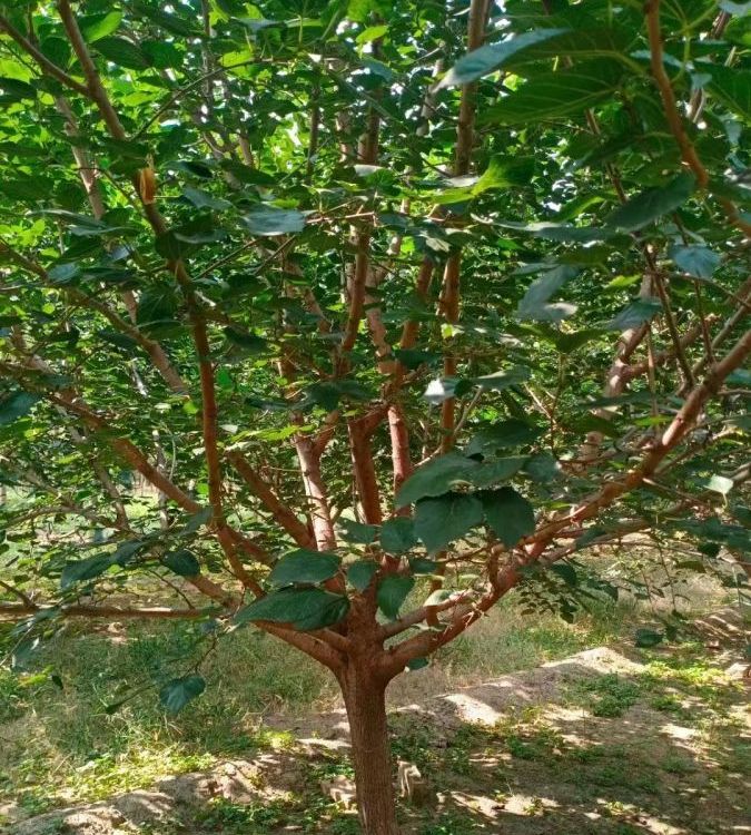 桑樹是經濟價格頗高的落葉大喬木,桑樹苗木植株高度一般10~40米,直徑3米,生長速度很快。桑樹葉橢圓形對生,碩大光亮,青綠色,嫩枝綠色,老枝青綠色或灰色,樹形直立挺拔,樹桿筆直,很少有彎的樹。3月下旬開花,4月中旬果實成熟,紅色或紫色果子,各地氣候不同略有差異。桑樹分公樹和母樹,雌雄異株,所以想結果必須要有公樹授粉。桑樹的根、皮、果都是常用的藥材,桑樹果又名桑葚,是一種非常美味可口的保健水果,長景園林提供的桑樹都可以結果。